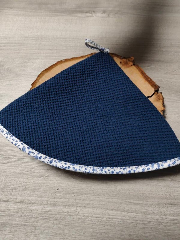 Réalisé en coton nid d'abeille, bordé d'un biais fantaisie.